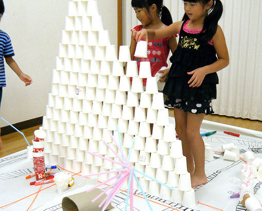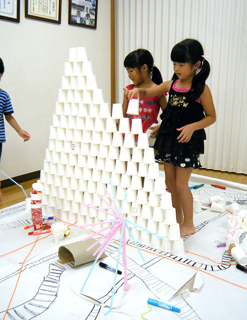 “白色の世界” 真っ白な紙に白い紙コップ・・白色の世界に入りこんで、イメージをどんどん膨らませながら世界を広げていったね^^