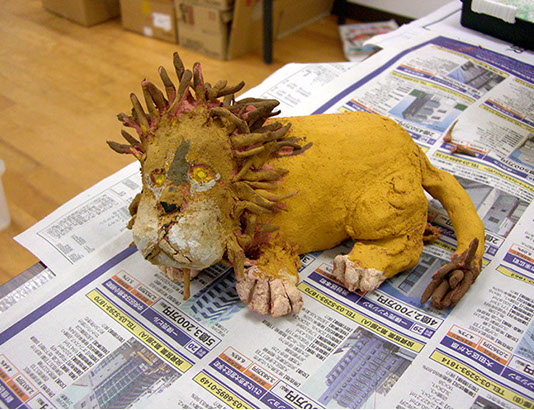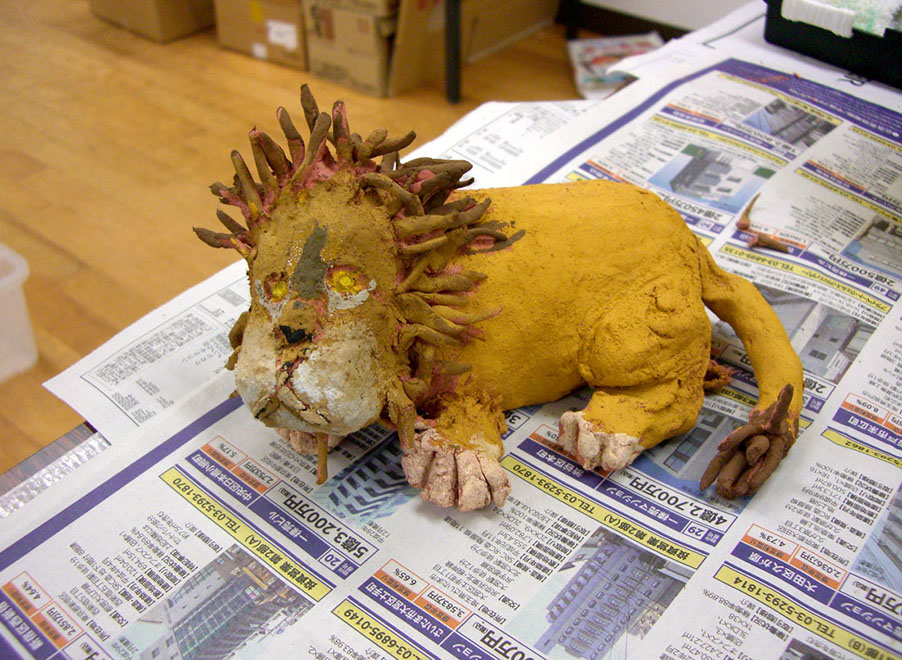 ”ライオン” 座っているライオンの形をよくとらへ、タテガミや顔などとても表情豊かに現されています