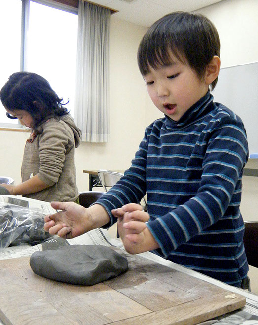 まずはねんどを丸めたり、平らにのばしてみたり・・