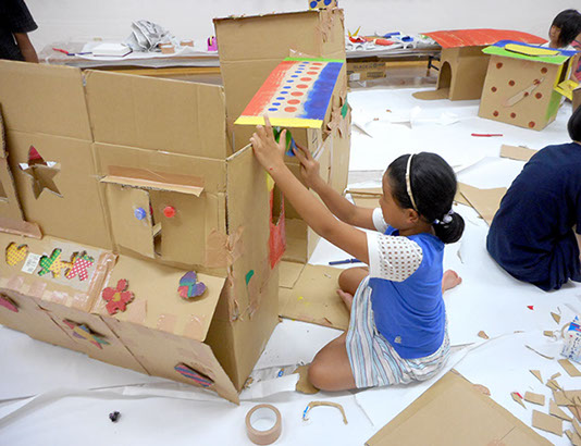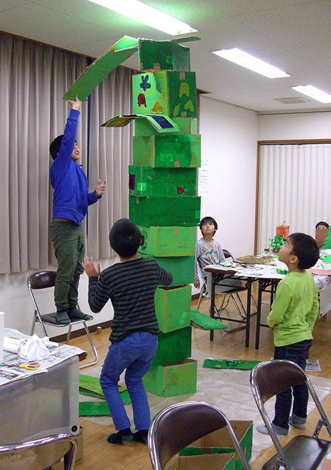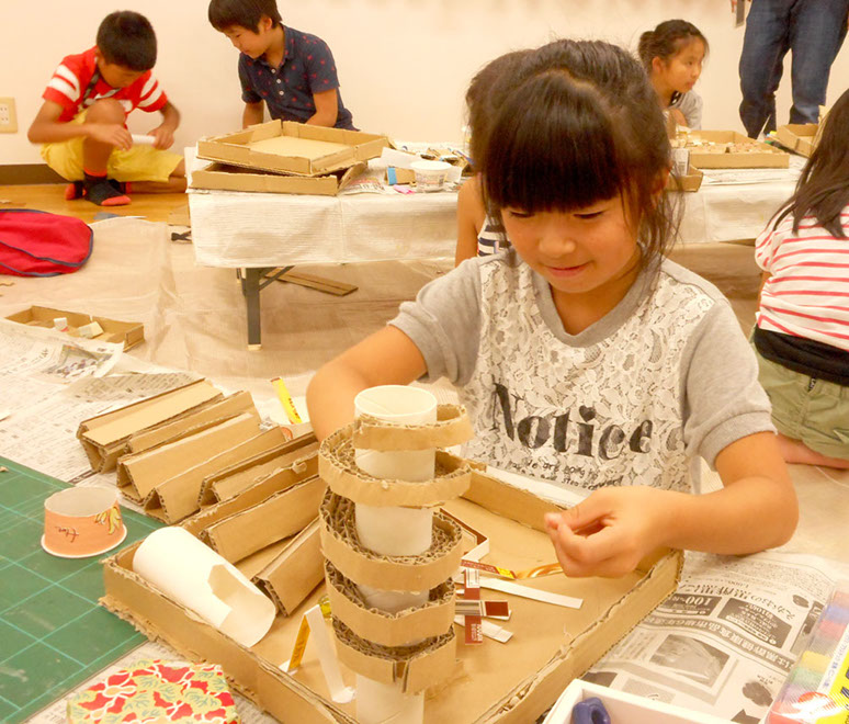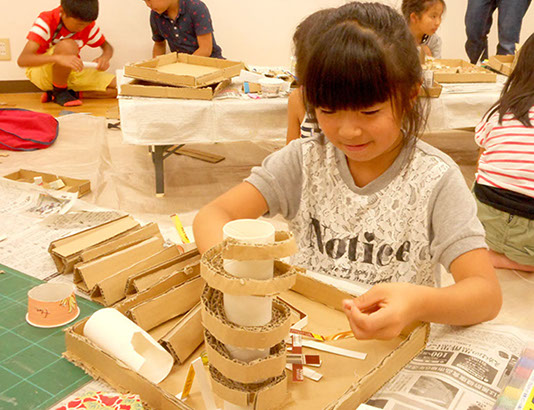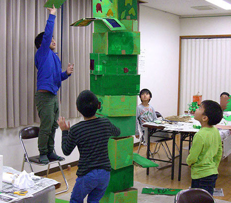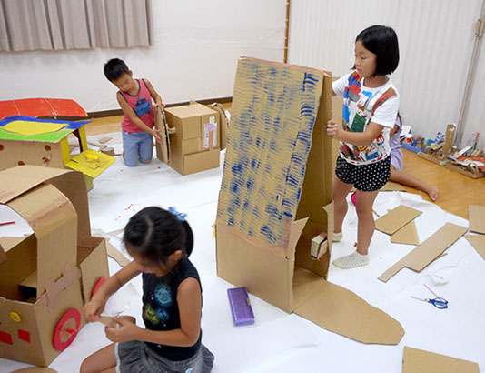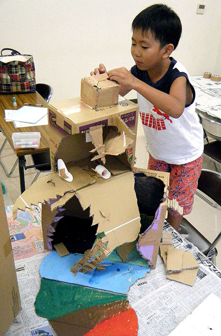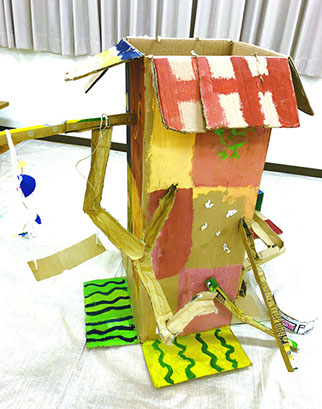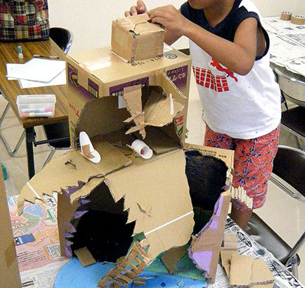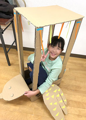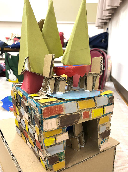 ”ダンボール工作”でお城をつくりました。 レンガや屋根のとんがりなど、特徴がよくとらへられた、迫力あるお城です。