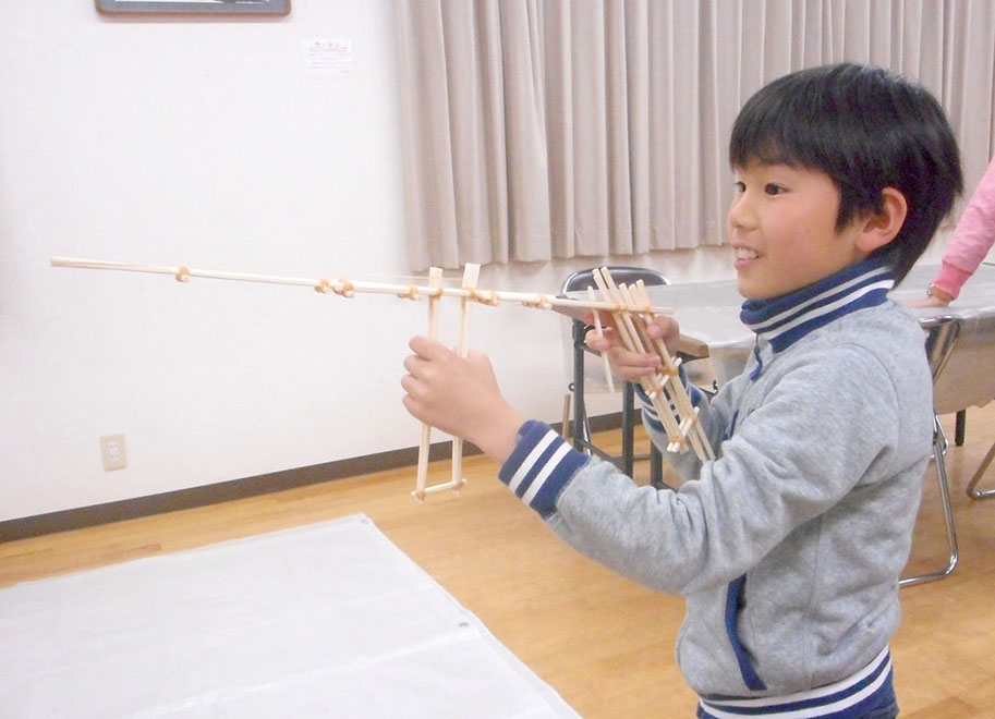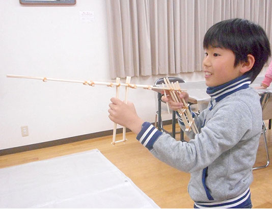 昔なつかしいゴム鉄砲をつくりました。この大きさ!かっこいいね。