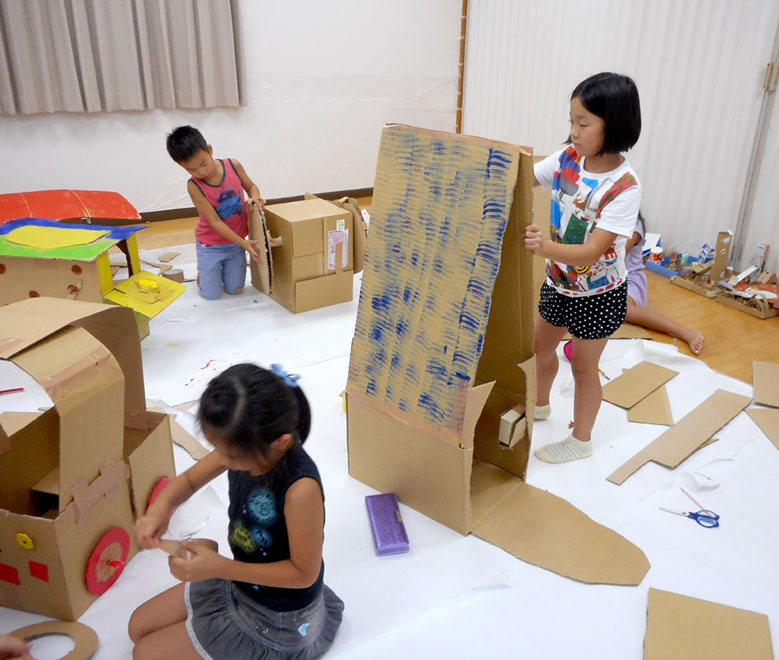 ”のりもの工作” どんな乗り物にしようかな?屋根をとがらせたり、タイヤを大きくしてみたり、とてもユニークですね^^