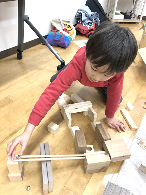 いろいろな形の木片をつなげて つなげて・・どんどん変化していくおもしろいビー玉コース!