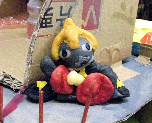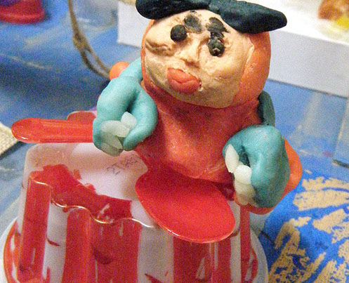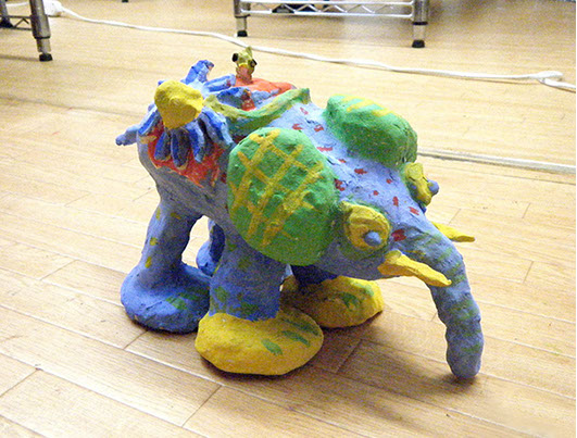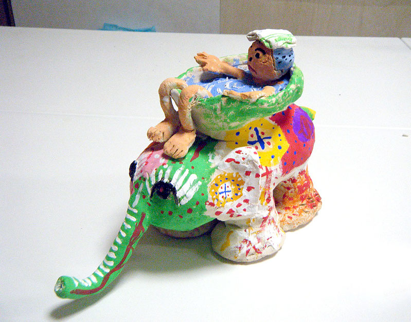 「ゾウの立像」 ゾウの上にお風呂に入ってくつろいでいる人がいる??^^発想がとっても豊かで素晴らしいね。
