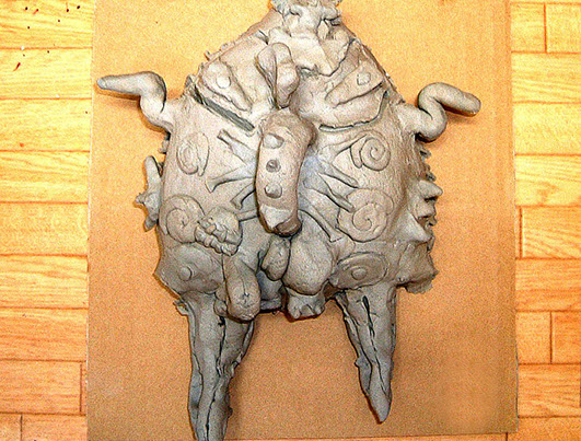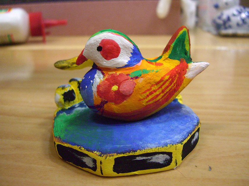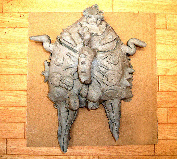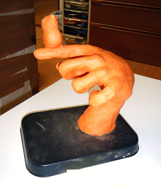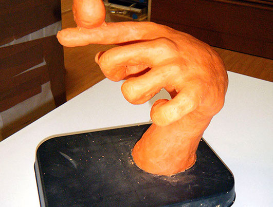 「何かがのっている手」 自分でポーズをつくり粘土で現してみました。想像で造られた上にのっている鳥も自然に現されており、形態感が見事です。