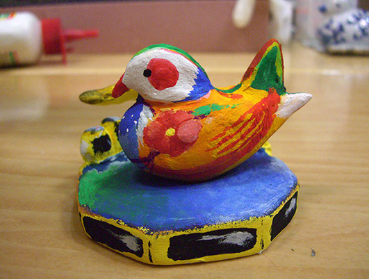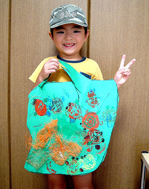 「大きな鳥」 羽のもようがカラフルなうごく大きな鳥をつくったね。