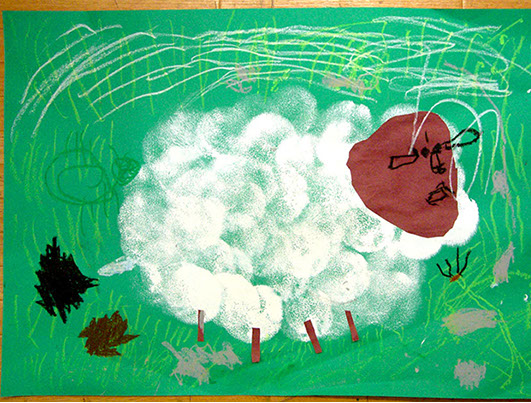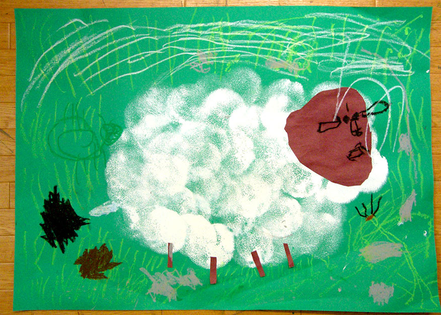 「スタンプひつじ」 もこもこしたひつじの毛をボールでぽんぽん!たのしいね^^