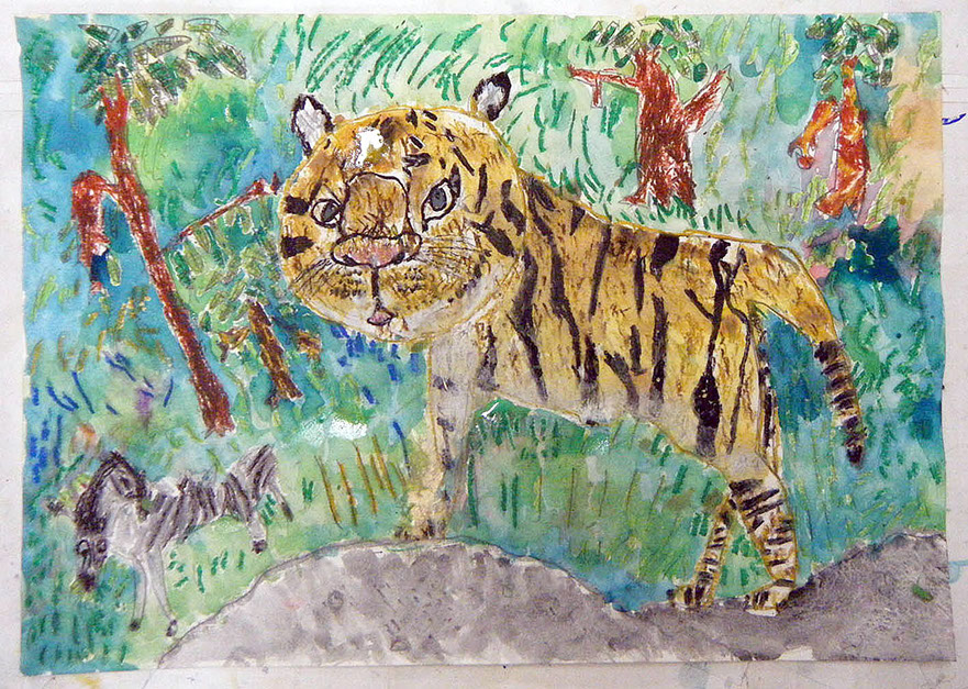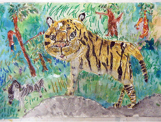 「ジャングルのトラ」 なんとも魅力的なトラの表情。模様を根気よく楽しみながら描いていたね。