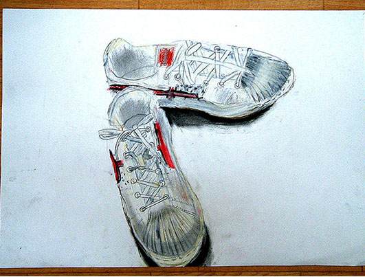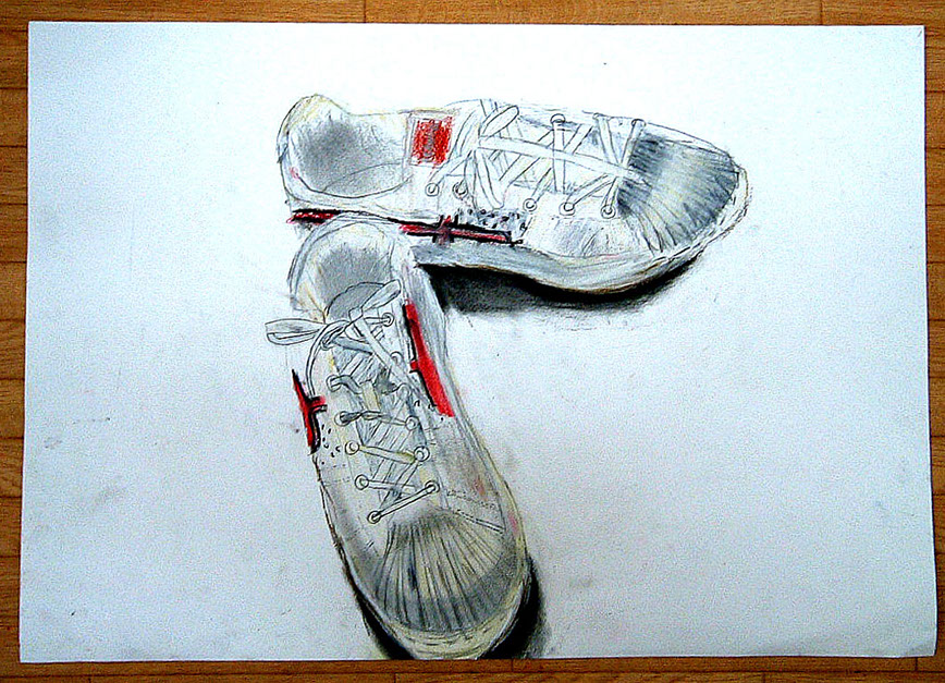 「写実_くつ」 履きこまれている感じがよく現わされており、よく見て描かれています。