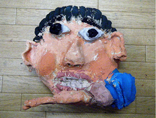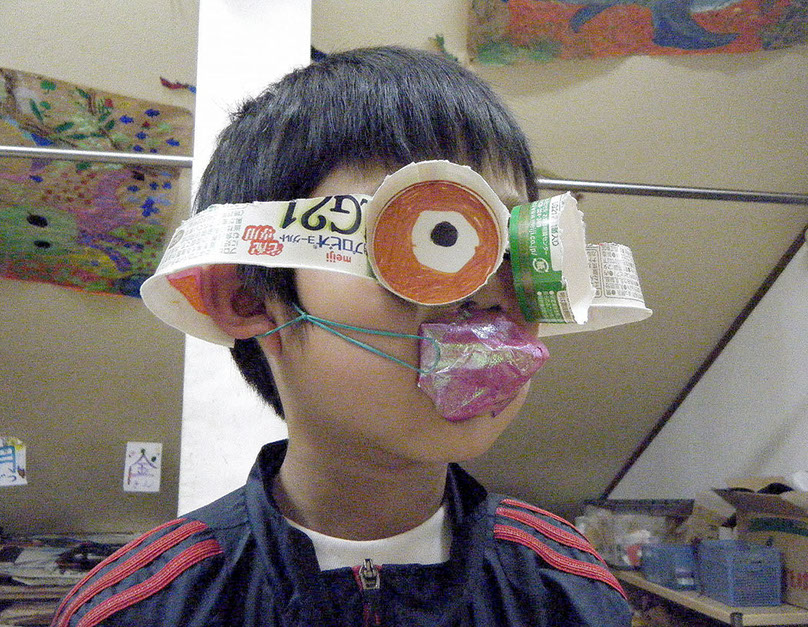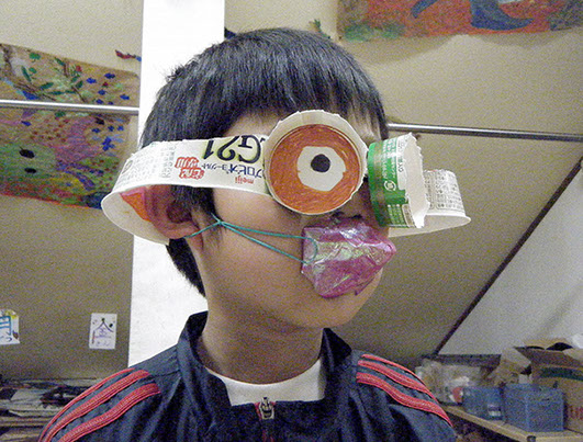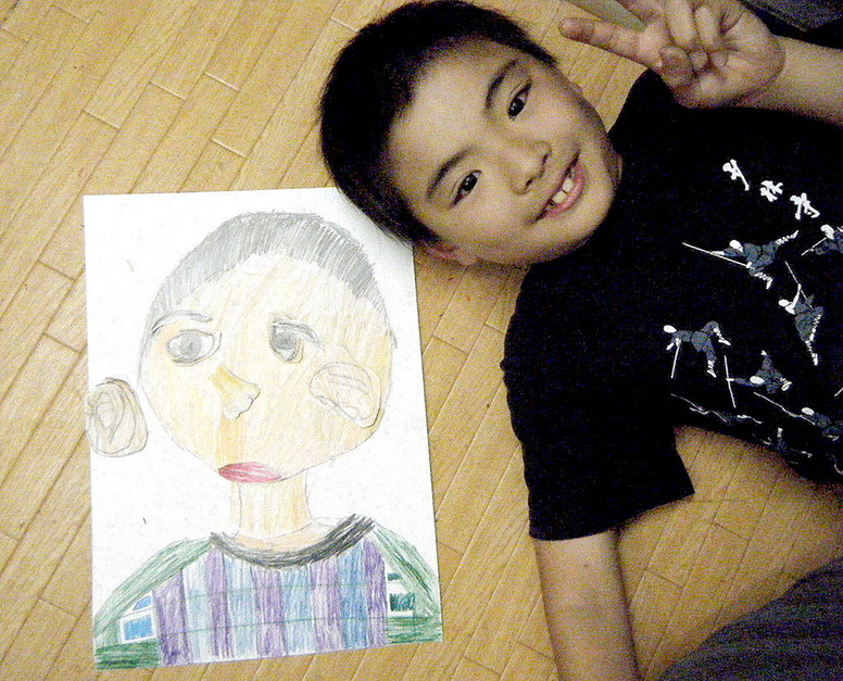 「自分の顔でふくわらい」 目隠しして置いてみたけれど・・横向きの自然な顔になったね^^