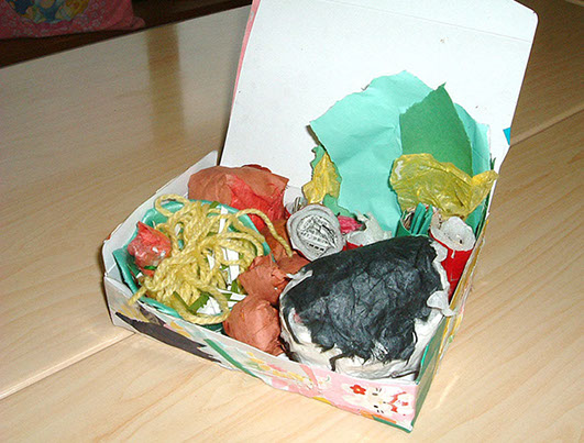 「どこに住んでる小人の世界」 みかん小人??この小人さんの家はどんなだろう?住み家も発想をふくらませ、楽しく造ったね。