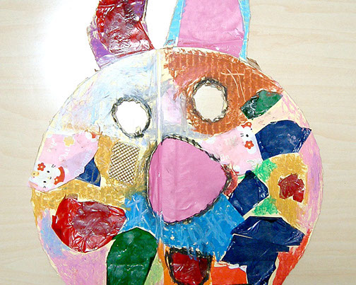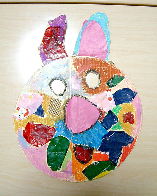 「おめん」 いろんな紙や色をつかって・・カラフルでかわいいうさぎさん。