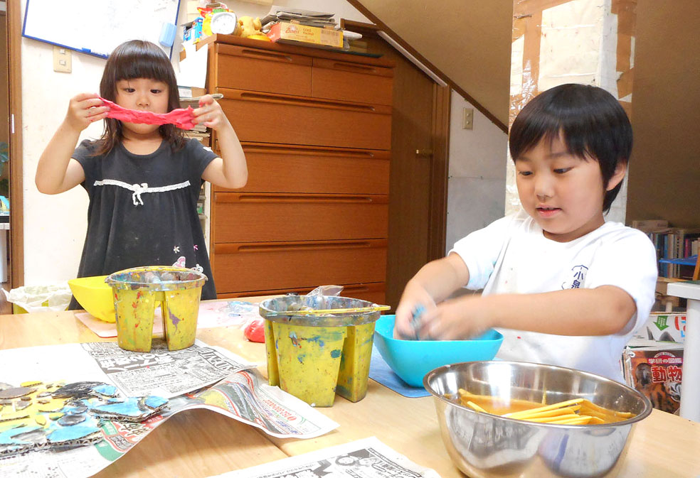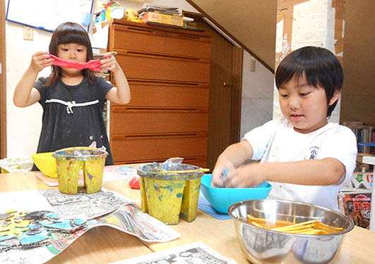 「こむぎこねんど」 小麦粉に色をまぜてひたすらコネコネ コネコネ・・どんどんふわふわ、のびてきて、きもちいい!