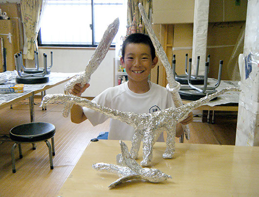 「ホイルアート」 アルミホイルだけでできてるとは思えない恐竜。。かっこいい ホイルで変幻自在だね。