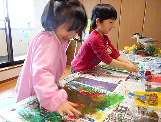 「ローラースタンプあそび」 凸凹ローラーや、もようスタンプ楽しいね^^”さいごは手でも描いてみちゃお!”